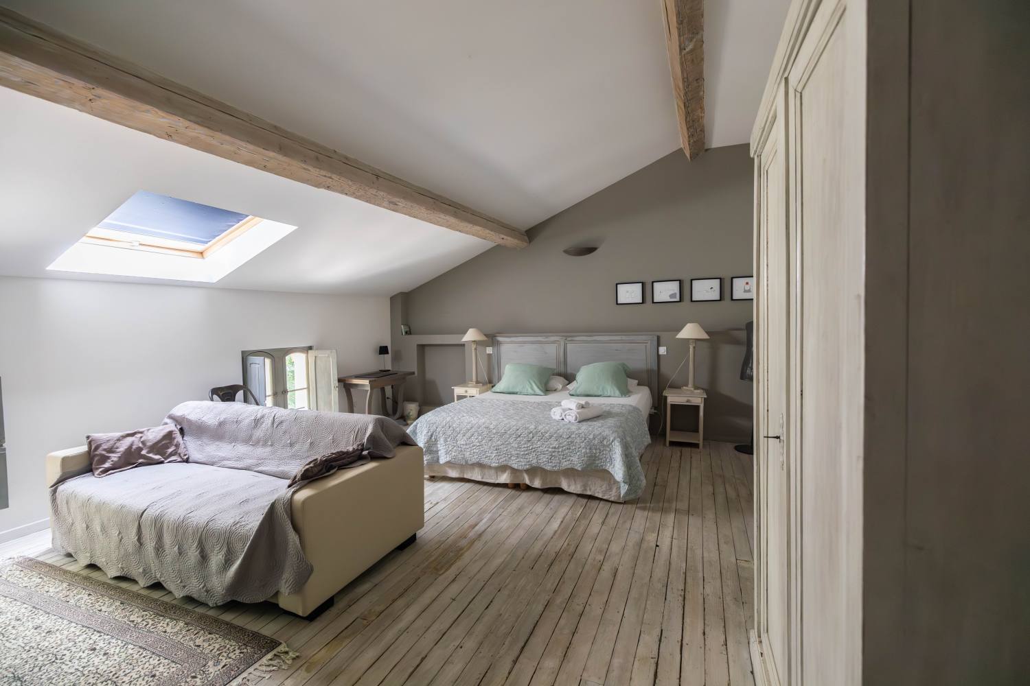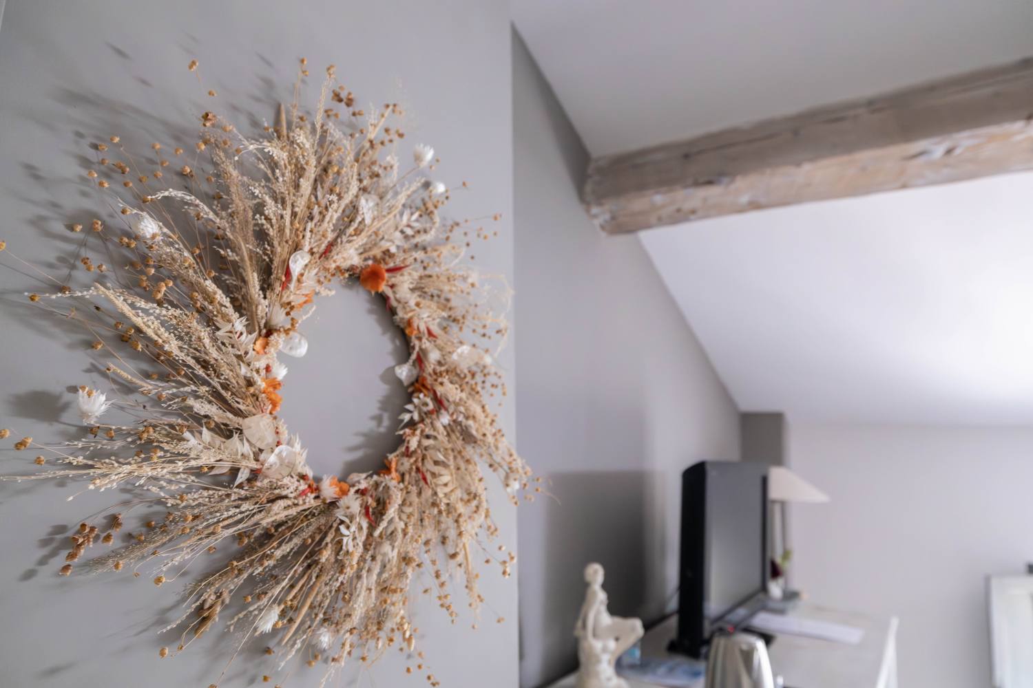 Le charme de l’ancien de cette chambre sera vous séduire : parquet en bois, colombages et fenêtres d’époque avec volets intérieurs.