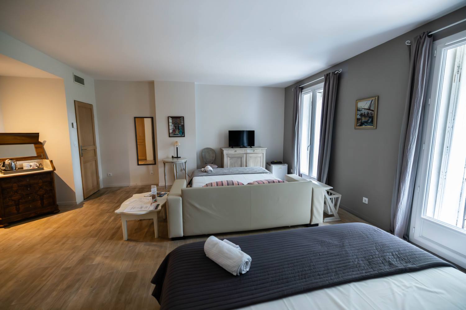 Avec sa belle surface de 37 m², cette chambre lumineuse et climatisée est tout confort :