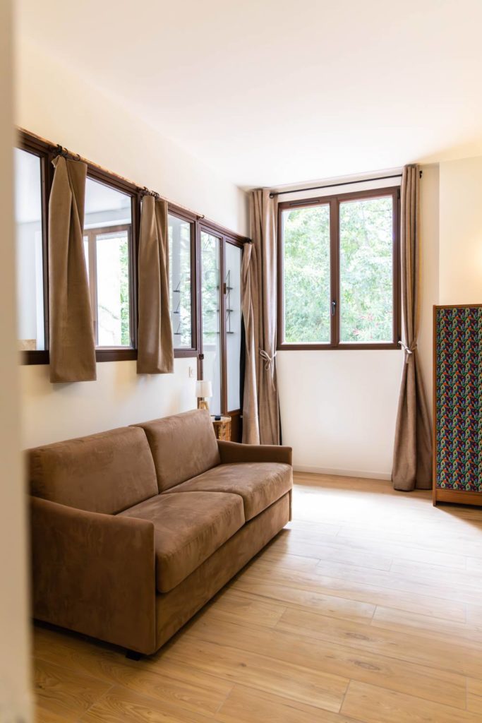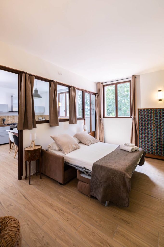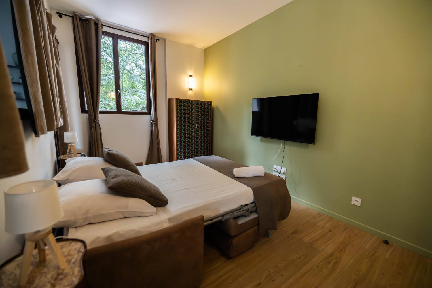 La troisième chambre donne sur le salon. Son canapé en 140 est convertible en lit avec un matelas de qualité hôtelière.