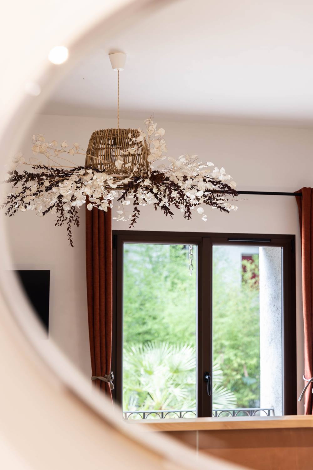 Il a été décoré avec des pièces réalisées par des artisans locaux ou chinées au gré de nos balades, pour créer une ambiance chaleureuse et raffinée.