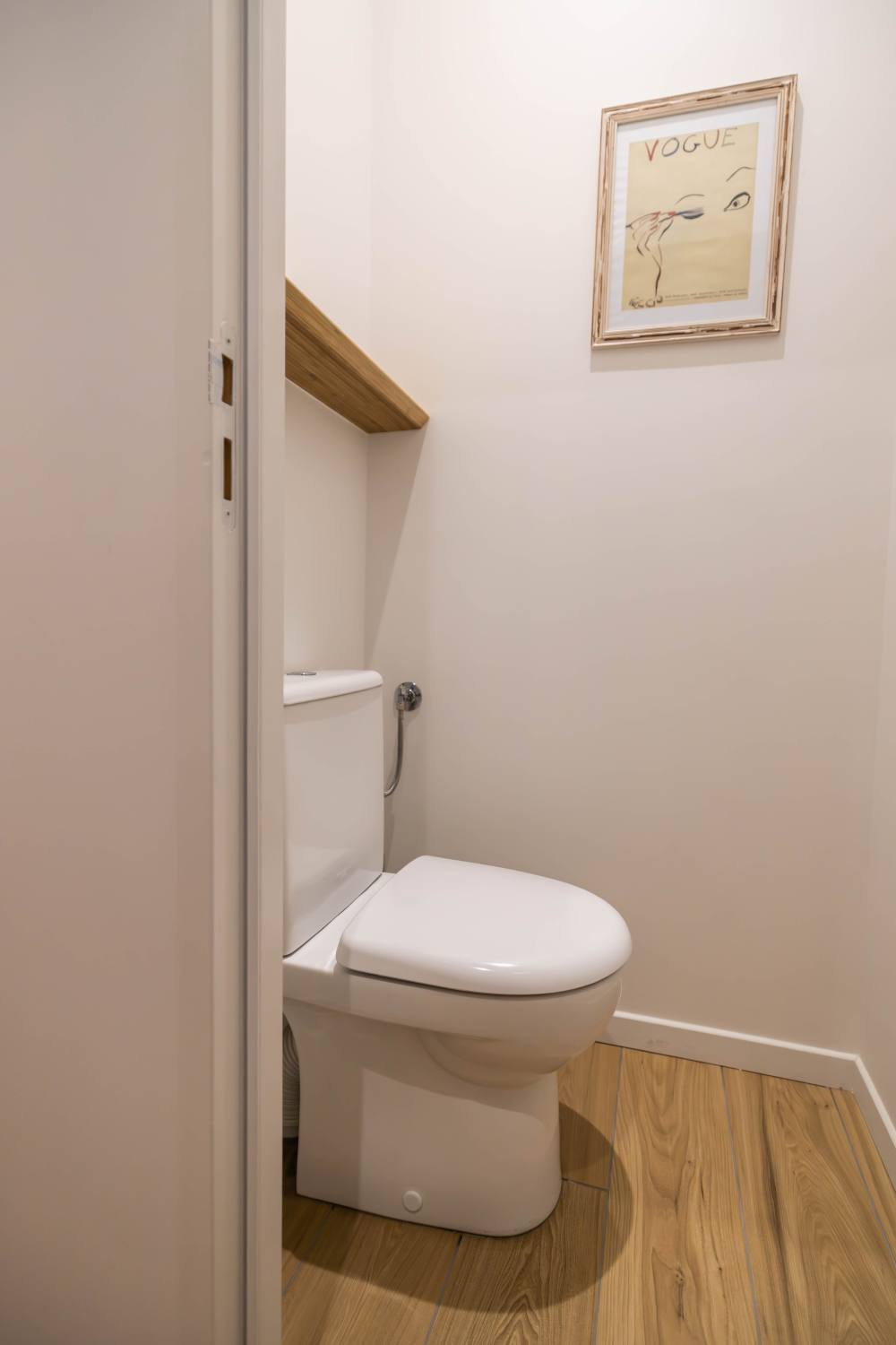 Une salle d’eau avec douche à l’italienne et des WC se trouve à proximité des deux chambres.