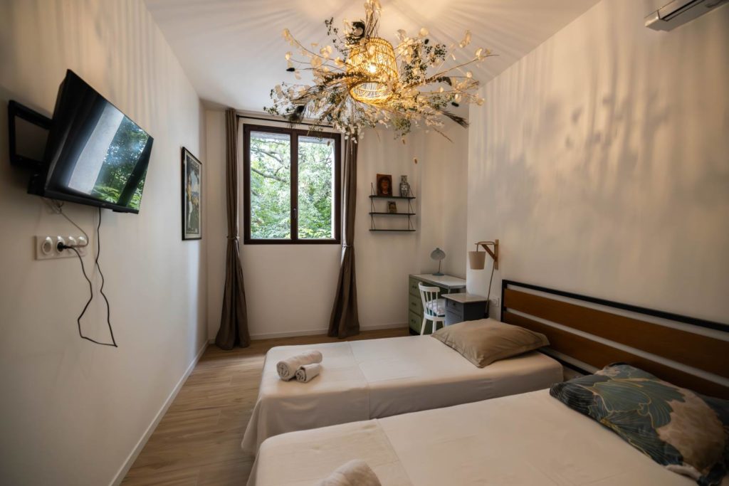 La seconde chambre est composée de 2 lits une place que l’on peut assembler en un lit de 2 places (en 160X200).